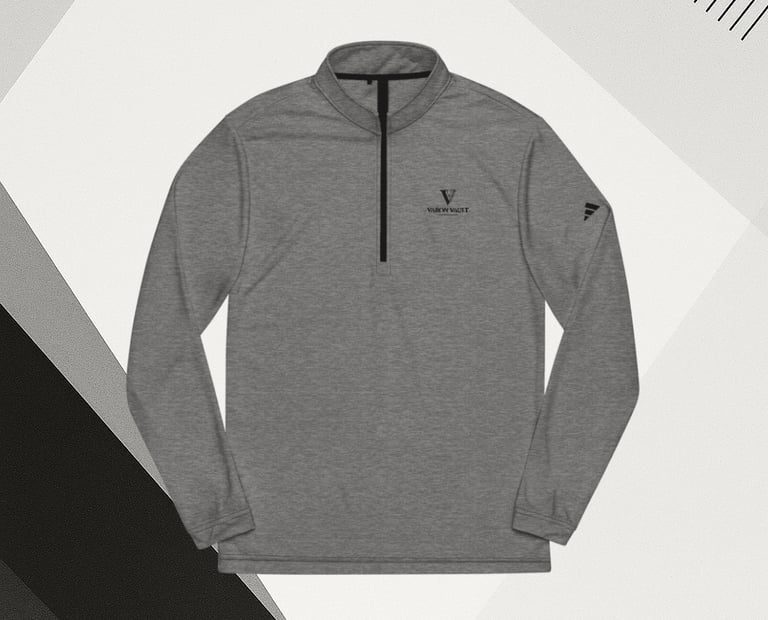 Suéter con cremallera de un cuarto VARON VAULT en color gris; minimalismo funcional con logo bordado en el pecho y detalle gráfico en la manga. Tejido técnico de tacto suave, ideal como capa intermedia para uso urbano o activo. Corte cómodo, estilizado y fácil de combinar.